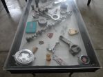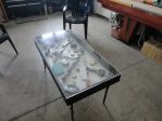 This is the coffee table in my garage. There is a string of lights around the top edge that give it a nice "glow" at night. Has four 4 cylinder camshafts for legs. Plenty of beer and "BS" goes on around this table.