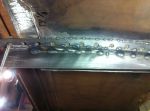 I went into the garage this morning and had an idea! I'm gonna pull out my handy-dandy extend-a-table! It's a wood frame that I made to slip in the end of my build rack to hold large sheets metal pieces to cut and work on. It's tight in here so I gotta utilize any space that I can. I cut a bunch of reinforcing/backer strips out of 16 ga. I have to rebuild my doors. They are woodless, frameless, flimsy pieces of sheet metal with a beltline! I know it's not going to be easy, but I kinda have an idea of what to do to reinforce them, but if anyone has gone through this before or if there are any sheet metal masters out there with any ideas or tips , i'm all ears [and eyes].