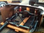 I'm moving the battery box from where you see it now, because if my calculations are right it will hit back/bottom of passenger seat, unless I make it a fixed or stationary seat. I am definitely making driver seat adjustable this time. This set up worked in my sedan, but since these early photos, I've set the engine back 5", changed doors to a narrower set and moved rearend forward 5". My wife wont let ME back there, so I don't think she'll like a battery post! I'm gonna hang it in front of axle tube on wide side (drivers side) of differential. Would have preffered passenger side to offset weight (driving solo most times), but I need those few inches to clear air bags! That's one of the neat things about a "scratch build", you can place or relocate components and MAKE it work! I really appreciate the input Cat, thanks again.
