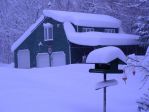 if you look through the trees you can see I have one of those portable garages to store the lawn mower and some yard stuff I can barley see it it is totaly covered with drifts all around it..