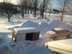 if you look through the trees you can see I have one of those portable garages to store the lawn mower and some yard stuff I can barley see it it is totaly covered with drifts all around it..
