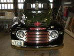 Actually, not so much bites the dust...more like, completed, and ready to go out the door. This Merc is the latest vehicle that has been restored at the shop and is waiting for a ride home in a enclosed trailer. To nice to get all slopped up with the winter slush and all. The owners Greg and Tearza Sundby of Camlachie ON (just outside of Sarnia) are justifiably proud of the finished pickup. Greg was able to do a huge amount of the work on his own truck while it was at the Loxton and Company restoration shop. Loxton's is one of the few shops that allow, even encourage the owners to work along side of the hired help. I only got a couple of pictures before my camera went south on me. Should be able to get more at the first of the week. This one has been taken back to it's original condition. Wait till you see the interior, engine and underside of vehicle.