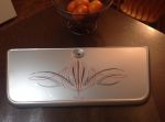 Right out in left field here with this thing.. I was awaiting my family to partake in Mothers Day festivities and when they give me too much time in the garage alone I get fidgety.. Took a sheet of black painted aluminum, attacked with the grinder and a flap wheel then shot a quick wash of candy and clear, I need to do another but this time I will take my time and possibly do a hot rod or something to that effect.. Chris.