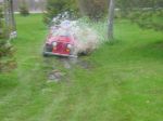 Mustang was street racing Car was impounded and driver lost his licence plus big fines. Custom on the track where safety and burn outs are welcome. The Jeep was just doing what Jeeps are born to do.