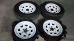 ha ha dammmmittt just tripped running out to check my trailer , my rims are a bit ratty , but are 14,s . I,m at young an big bay . Man I never get a break ha ha . where did you get tires ?? some place have em on sale ??..77.