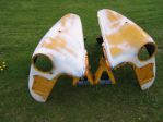 I'm looking for both front fenders too. I do have a grill that is for paint only. Well it's painted right now but what's underneith I don't know. Joe, those yellow fenders are for a 54 I believe. I think I know where a hood is.