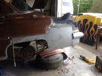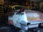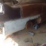 New quarter skin fabbed, inner quarter from floor to bottom made as well, nothing seems to fit a Chevy when you weld half of a 56 Caddy to the back,lol!