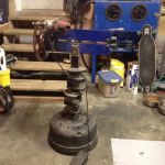 Cheapy Eastwoods bead roller ,powered by a variable speed 1/2" drill ,foot pedal operated with the variable speed switch out of the drill handle added to the Harbor Freight on off foot pedal. Reduction is a Chevy ring gear /flex plate and a Chevy starter drive gear welded to a 1/2" stainless bolt shank, being broke is the mother of invention in my house,lol! This setup will allow such a slow speed that I can feather and control so nicely.. I will be submitting some bead roller art when I have time to simply play with this thing and my tipping dies..