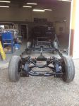 Well, seeing as the engine isn't ready ( it took us about 3 weeks to get all the parts in from the U.S. And the machine shop wouldn't touch the block until we had all the new internals),the decision was made to put the body back on the frame and deal with the driveline later