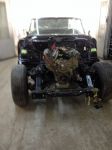Well, seeing as the engine isn't ready ( it took us about 3 weeks to get all the parts in from the U.S. And the machine shop wouldn't touch the block until we had all the new internals),the decision was made to put the body back on the frame and deal with the driveline later