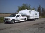 I now tow a 6000 lb 5th wheel with my 97 GMC K1500....I suppose the trailer weighs a bit more than the truck. I got a new brake controller this year, a Prodigy P3 proportional controller....It is real slick, takes all the jerkiness out that you usually get with the timed brake controllers