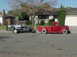 Re towing-my 55 Chev truck has disc brakes on the front and a later 6 bolt rear end. It also has a 350 with turbo 400. I think it weighs about 3800lb. The trailer is 1600lb with electric brakes. The 39 Ford is about 3200lb. I was hesitant to try it at first,but it seems to do just fine. I would not try this with a truck any smaller than the 55.