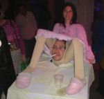 she was gonna go out with three other girls as nurses . I was gonna be a doctor , but after the woman told me they had one eggstra large costume the same as hers at the store , well things just started to happen . we had a lotta fun . people got in line to get a pic with me .