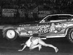 No-one broke. They used some traction compound that didn't work as it was suppose to. There was a road grader scraping the track, then a washing / scrubbing with Tide Soap by hand and with a street cleaner. I think it was about a 5 hour wait, then John Troxell went up and made some test launch's with his SS/O Olds. 1975 WCS Meet.