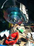 quick shots of the engine and brakes. Brakes are wilwood superlite 4 piston calipers with 11.75x1.25 wilwood rotors and custom hats to fit the BMW spindles. Originals are like 8-8.5 inch, not vented. at the time the wilwood upgrade was cheaper than doing OEM brakes, calipers were $500 a peice, superlites were like $150. The hats a racing friend had made, I had some mounts made.. and away we go.