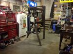 Well here's what I got done this weekend. The center core is welded solid but the legs are just bolted on so I can redesign/rebuild them if they prove insufficient. I've made two mounting plates on the front in an attempt at a modular system and maybe adapt more tooling in the future, possibly a home built bead roler and a planishing hammer. Have a look and please, DONT HOLD BACK...