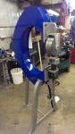 Throat is approx. 26 in as the wheels are set forward a we bit in front of the modular mounting plates. Spent most of the day today fabricating the supports for the top wheel and prepping for powder coat. A friend suggested I should mount the shrinker stretcher on the rear of the frame, so back to the drawing board.