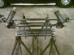 Here is a picture of my front axle for my anglia I just looked at a gasser that was put in the barn I think he said late 60s and it had the same axle as mine coil overs and all.I guess some didn't run two leaf spring solid axles.I was there can't remember. jonny you know get the cut off out 46" track width either custom make it or start cutting speed way stuff or call fatman and get the larger wallet out .Iam going to take the anglia spindles off and put some on I can put real brakes on. Cheers Dana