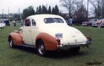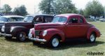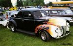 The two tone brown coupe belongs to Hans Boch and repainted aqua now. The red 1940 Ford Deluxe coupe belongs to Bob Carter. Both are members of the Roadrunners Car Club of Hamilton. I believe Kenny Kay did the paint and flames on Bob's car back in the late 70's early 80's.