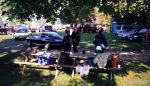 The green '37 Chev Sedan Delivery belongs to Ned Karlokoff ?? from Brantford. Has owned that car for a very long time.