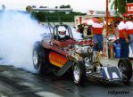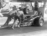 I think that was at the 3rd annual Funny Car Reunion, held at Englishtown. If I remember right, we took a couple of pistons out at around 4 seconds into the run. Actual carnage would have started when the switch was flipped, so would have been down on power from the get go.