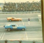 Found this picture online. Recognized it as an Ontario. Might be Linda Vaughn and John Petrie's 'Cuda. License plate on Monaco maybe 1971. Don't know who's photo or what track.
