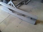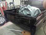 The next step is the wood floor for the box. I was able to find some kiln dried 2 1/4" thick Black Walnut planks between 7 and 10 inches wide, that I will be using for the floor. What I've done, is had them ripped in half on a band saw, so I made 2 boards from 1 plank. This will allow me to Book Match the boards (1 board will be a mirror image of the other when laid out) I still have a Gallon of clear left over from the paint job, so I guess the wood will be shiny too...Lol