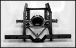 This assembly uses a four link suspension, with a wishbone locator (you can see the wishbone in the pic). You can't see the actual four link bars as they are mostly hidden by the frame rails. However, all four of the bars run parallel to the center line of the chassis, neither the upper or the lower bars are installed at an angle (when viewed from the top) like a GM inspired "triangulated" four bar (refer back to the yellow frame in my earlier post).