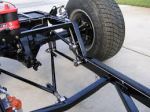 This assembly uses a four link suspension, with a wishbone locator (you can see the wishbone in the pic). You can't see the actual four link bars as they are mostly hidden by the frame rails. However, all four of the bars run parallel to the center line of the chassis, neither the upper or the lower bars are installed at an angle (when viewed from the top) like a GM inspired "triangulated" four bar (refer back to the yellow frame in my earlier post).