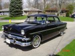 1954 Ford 2 door post. Florida car that was brought into Canada 5 years ago, and worked over by a retired mechanic out of London, Ont. 61000 original miles ( and it shows ) on the car,..the old Y block removed and replaced with a completely rebuilt, '69 Mustang 289 engine and a rebuilt C-4 Auto. Tranny,...with a rebuilt '96 Ford rear differential, w / highway gears. Approx. 4400. miles on those components now. We went to look at it last Sunday,..and I had an idea, by the way that she was going over that little jewel that it would be coming home with us. I left a depoit,..and the old gent delivered it to her the first of last week. She has been wanting one of these from the time that she sold her '53 Meteor rag-top just after we were married, so now she is happy !!