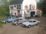 On the left side behind the garage is just a truck ( International I think)box that someone turned into a trailer.... my uncle bought it to use in a rat truck project. On the right side in behind is a '68 Chevy truck .... another rat project ( hard to see in the pics) . What you dont see is a mid 40's International cab, hood and fenders) for another project. Lol