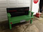 perfect for the garage,the back yard or even that room with your collectibles . Hand built from old growth Oak rough spawn in to slats,quite comfortable, stained and varatahned to resist the elements. Located in Campbellford. $400.00 firm or I sit on it and enjoy myself,lol..