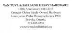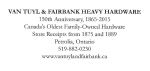Van Tuyl and Fairbank of Petrolia Ontario is celebrating the fact that it is the 'Oldest Family Owned Hardware store in Canada'. As of Friday July 10th 2015 it will have been continually in business for 150 years. The store will be open and conducting tours and talks on it's history. A couple of pictures and descriptions of the store, and early store receipts.