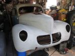 I had a sedan gasser in mind when I started with this stuff but we're changing direction with our other Willys race car and I won't have the time or money to proceed with this project It's a 39 shell(no floors) sitting on an original chassis. The fibreglass front end is a 40 and needs a little mending. I have good glass rear fenders and lower rollpan. I also have the front half of another sedan cab that I thought of building into a pickup like Kiwi Kev has done on the HAMB. It's sitting on a 37 Ford chassis that has a front stub and a chrome dropped axle. This chassis has a 78 GM rear axle under it complete with brakes and tires and an aluminum fuel tank mounted. I have lots of doors and a decent trunklid for the sedan. I also have a 1939 Willys Canadian title. I would like to sell it all as a package for $3800. I'm in Niagara Falls.