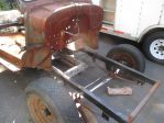 Here's the 39 sedan section sitting on the frame. I have doors for it. The aluminum fuel tank with sending unit is fitted in the frame.I can add the front fibreglass nose to it and will sell it with a Canadian 39 Willys title. It will make a great Willys ratrod or build into a gasser. Price is $2300.