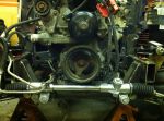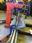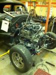 Tossed it in the frame, leveled and squared. Tack welded a 2X2 tube to the bottom of the frame to hold the trans up and shim it to location. Started to make engine mounts. I had already made up the block mounts, just a matter of locating the engine and making some tabs to the frame.