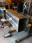 Started with a cardboard template. Traced to a piece of 18 gauge, Bottom edge is rolled under and flatted. Inner raised panel done on bead roller. Top flange bent 90 degrees.