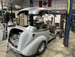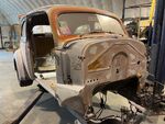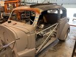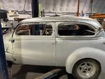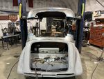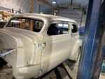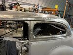 I've wanted to chop this car for the past 35 years. Finally getting to it. 2" is the perfect chop IMHO, any more and it really looks chopped. I braced the body using the door latch and hinge mounts. Measured and laid out the cut lines in tape. I was fortunate to find another donor roof, a 4 door that was being parted out. I got the roof and 2 rear doors. Cut out the B pillars and lowered them 2" tacked into place. I could reference the roof to make sure it's in line. Cut out notches around the rear and side windows. Cut the A pillars, and sail panel. Lift off.
