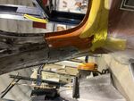 Made up some rear body mounts and got them welded in. A piece of 16 gauge cut bent and welded. These will go in at the very back where the floor meets the tailpan.