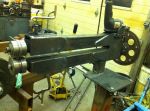 The drill I have has 2 spots on the side for extra handle, they are 3/8" fine thread, perfect mounting points. Welded a couple of threaded blocks to the bead roller, made up some flanges, a couple of spacers and put it all together. To make sure the drill didn't kick up I made a strap to go around the nose of the drill just behind the chuck. Welded it in place. Voila, powered bead roller. Test piece worked well, just have to order an foot control pedal off of amazon and good to go. I should paint it now that it's done, but I hate painting.