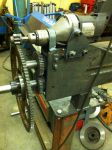 I built my bead roller about 8 years ago. (Sorry no build pics for it) but always wanted to power it as my wife didn't always smile when I asked to come to the shop at 10:30 pm to crank the handle. Couldn't figure a cheap way to do it until Chris Stapley showed how he did his. A 1/2" reversible drill, a starter drive and flywheel and a little ingenuity and things come to life. Chris used a chev but I had an old Toyota flywheel and starter kicking around so I used that.