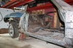 I asked what he wanted for the car and he said the wreckers will give me $35.00 and that was his price. I paid him quickly and the he exclaimed “where do you want me to tow it too”? I gave him directions to the Green + Ross location in Oshawa and the car arrived there within a couple of hours. My father came to assist me on the weekend and the 68 Station Wagon was put on the hoist and all of the body mounts were removed, Monday morning a tow truck came in a lifted the body off the frame. The following weekend the chassis was dismantled and loaded onto a trailer and taken to Redi-Strip to be completely stripped and a fresh coat of epoxy enamel put on the components.