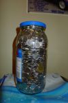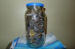 2.25l Vlasic pickle jar. dimes nickels quarters loonies and toonies.