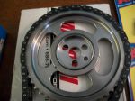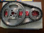 1 billit steel timing chain set ,3 bolt , timkin bearing top gear , lazer marked , multy slot , true roller type , double , new ,