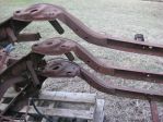 Some 60s Chevelle frames I am storing behind the barn. The bottom one is a convertible and you can see how it is boxed compared to a sedan frame on top. Behind the axle they are both the same. You are talking $1,200 to $1,800 for a convertible frame so I for one would box the one you have if it is solid. Or you could use an El Camino frame but you would have to shorten it a couple of inches behind the axle.