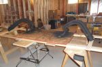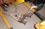using circle track headers as a base, bill vilneff and i are building a set of fenderwells. mounting them upside down and cutting and adding primary tubes.