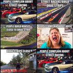 When I was involved either racing or working at Capital City Speedway we had to be done before 11:00 or there were phone calls. Track was there long before the people ever where. Nearest house had to be at least 2-3 km away. Bylaw would show up the next week and had out noise tickets to the manager. No chance to even argue it as it happened the week before and was because of a phone call only. Could have been a street racer for all then knew.