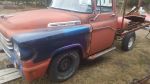 well here are some pics of the truck of many colours.he was trying to see what colour would look good on it.he has a stepside box for it but may have a line on a swept-side one,he has cleaned up the engine but needs a starter.