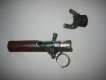 The problem I had with the homemade "cutaway tube" installation tool is that it only pressed on one side of the oil pump screen tube. I found it hard to drive it in straight when I am only exerting pressure on one side of the screen tube. What I've gone and done is add a second piece of short tube that gets hose-clamped to the longer tube tool ... essentially replacing part of the piece that was cut away, giving you a complete tube where it is needed ... at the point where it contacts the oil pump screen tube (hope this makes sense). The problem with just using a hose clamp to hold the two pieces together (I assumed) would be the possibility the small section of tubing would just slide up the larger piece (when pressure is applied), rendering the short piece of tube no longer useful for it's intended purpose. That is where those two U-shaped pieces come in ... the hose clamp holds the two pieces of tubing together and the two U-shaped parts