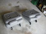 Bass boat seats? Fold down backs, flat bottom for rails or sliders not to big, not real expensive, about 50.00 ea. new. Grey ones from Bass Pro and/or Cabelas, blue one is Princess Auto.